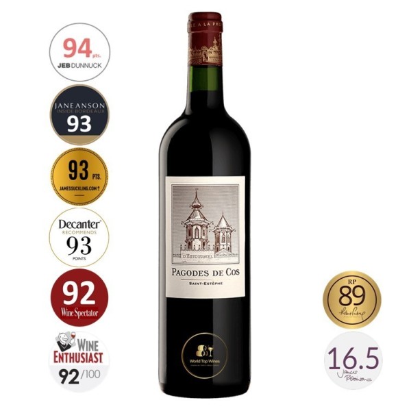 Pagodes de Cos 2020 is the second wine of Château Cos d'Estournel, from the Saint-Estèphe appellation in Bordeaux. It has an elegant, balanced and very seductive profile with lively acidity and ageing potential. Since its creation in 1994, Pagodes de Cos has always been produced from grapes grown in vineyards on the same clearly defined terroir; the vines are on average 40 years old.