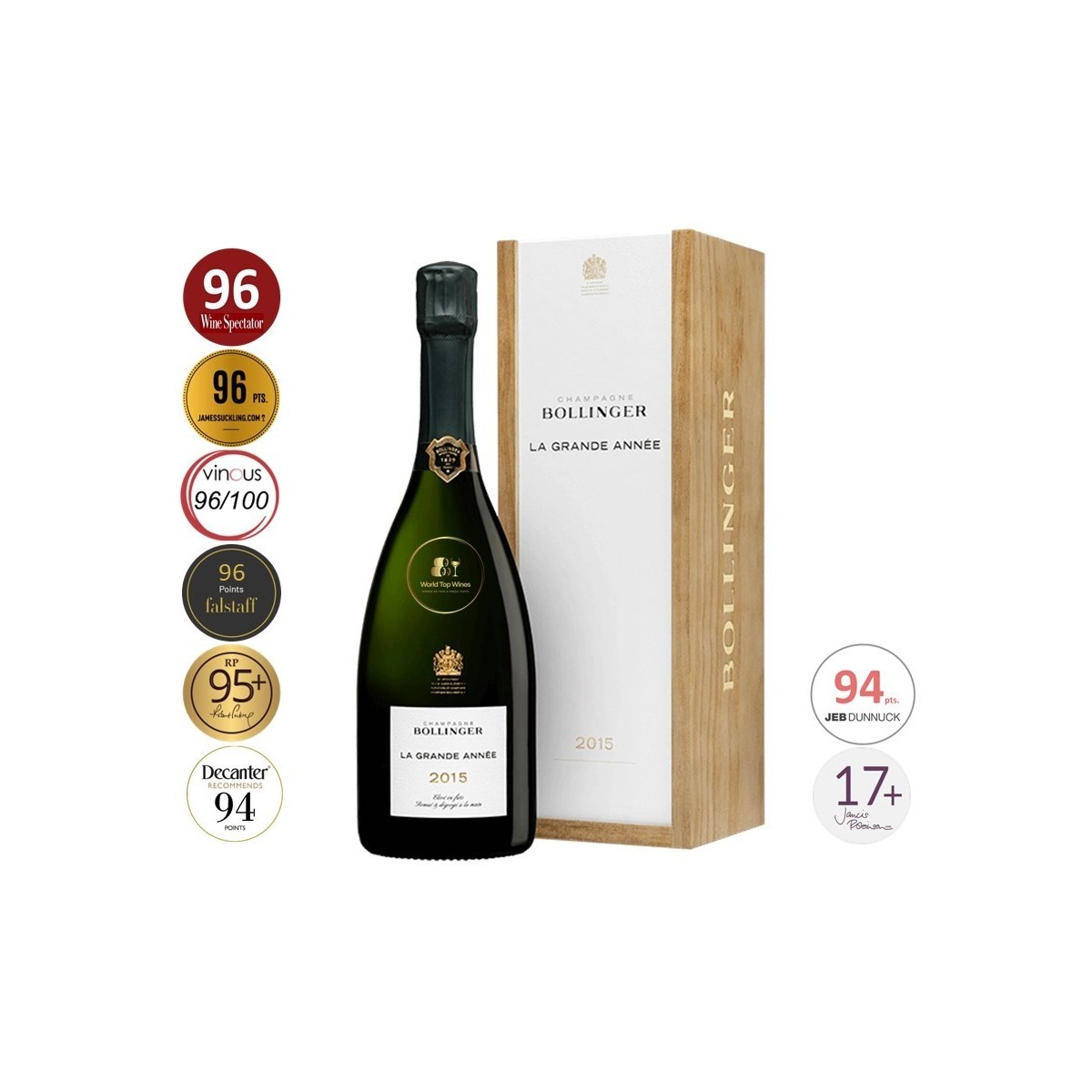 Bollinger La Grande Année Brut 2015 é o vintage de referência da casa de Aÿ, produzido em anos verdadeiramente excecionais. Nascido de 11 crus (79% Grand Cru e 21% Premier Cru) mostra a faceta mais intensa e gastronómica do estilo Bollinger, com a estrutura da Pinot Noir e a elegância da Chardonnay. 2015 foi quente e muito soalheiro em Champagne, moderado por algumas chuvas. A vindima começou a 4 de setembro, com cachos compactos, bagos pequenos e níveis de acidez surpreendentemente altos – combinação rara que deu origem a um Champagne concentrado, generoso e ao mesmo tempo preciso, com grande capacidade de envelhecimento.